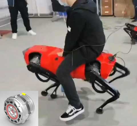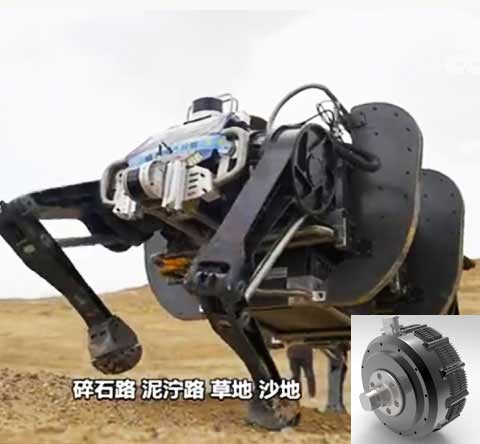 全電驅(qū)動12自由度大型仿生機器人關(guān)節(jié),單電機功率6kW,峰值扭矩1200Nm,輸出轉(zhuǎn)速120rpm,單電機重量10kg.